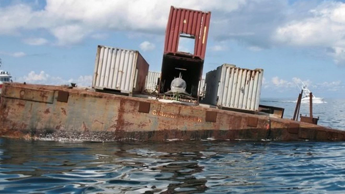 A shipping container is dropped off the SC Coast. Photo From the SCDNR Site.